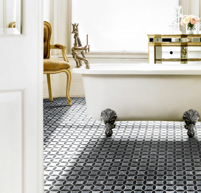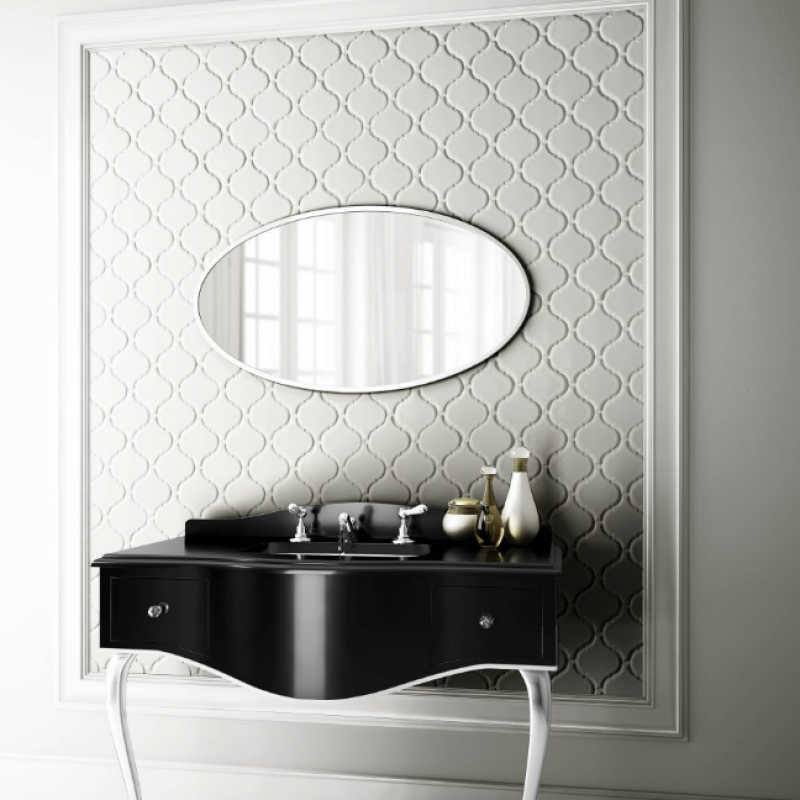 APARICI ROYAL to istnie królewska propozycja składająca się z białych i czarnych arabesek. Sprawdzi się nie tylko do łazienki, ale również w innych pomieszczeniach.