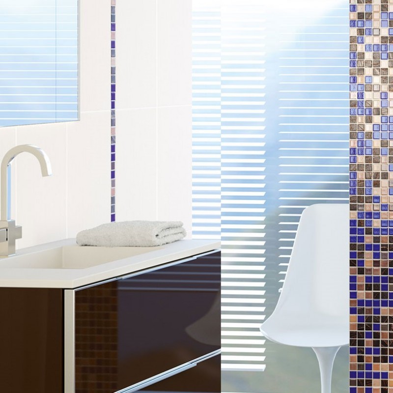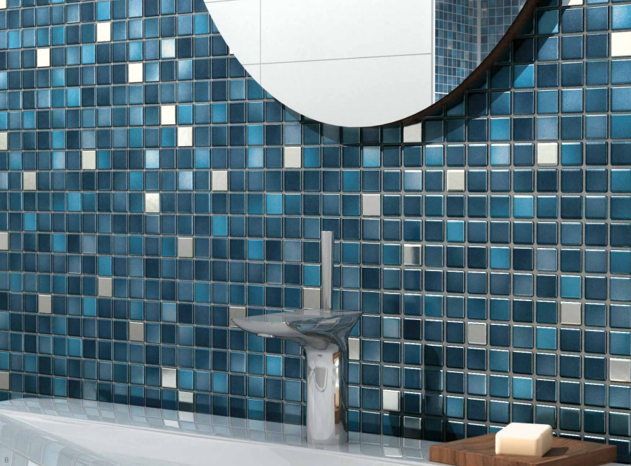 GRESPANIA MUSA to bogata kolekcja mozaiek w wielu kolorach oraz kształtach. Zaskakują swoją szklistą kolorową powłoką, która pięknie odbija światło i tworzy magiczną atmosferę w łazience.