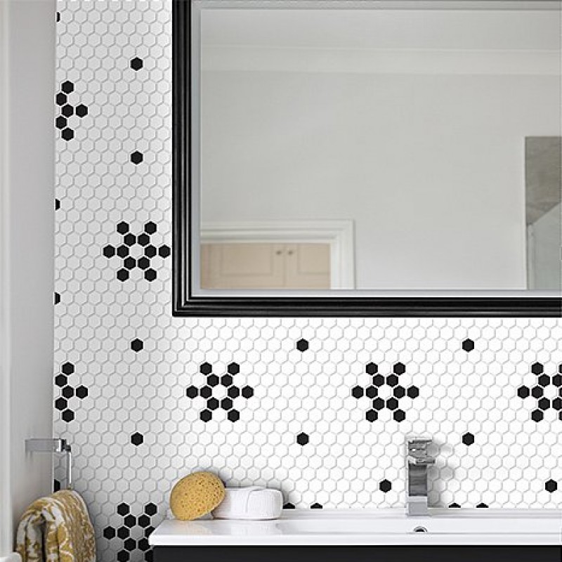 DUNIN MINI HEXAGON BLACK & WHITE SNOW to oryginalna mozaika inspirowana płatkami śniegu. Uatrakcyjni przestrzeń łazienkową i z pewnością przyciągnie uwagę każdego.