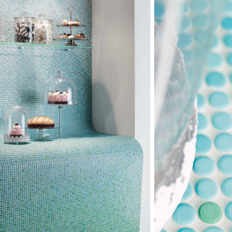 JASBA LOOP to mozaika inne niż wszystkie ze względu na swój okrągły kształt. Dostępna w wielu kolorach pozwala stworzyć efekt gradientu kolorystycznego bądź indywidualnych wzorów.