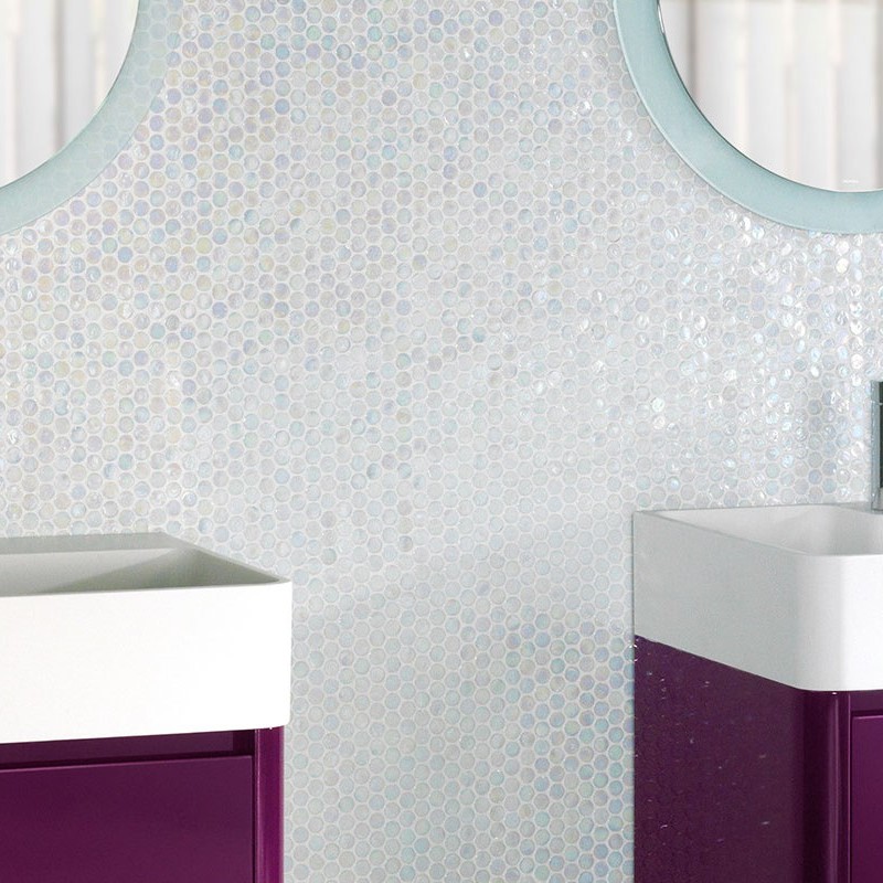 GRESPANIA VELIA to propozycja mozaiki niezwykle delikatnej i zachwycającej swą prostotą. Charakteryzuje się perłowym, holograficznym delikatnym połyskiem.