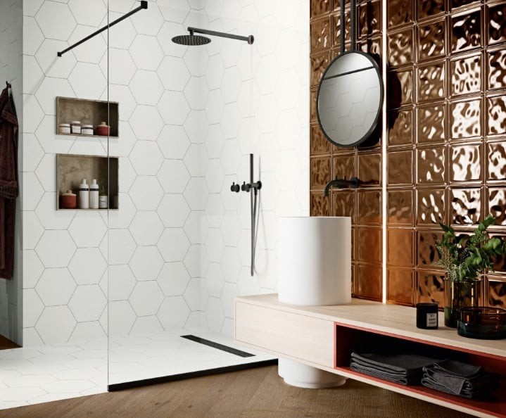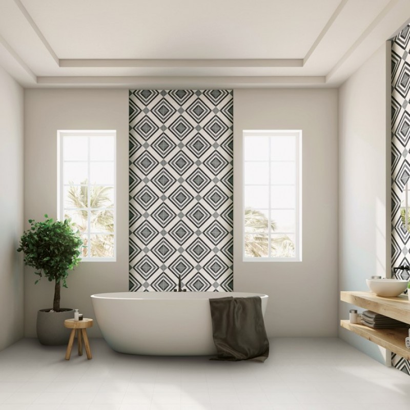 RONDINE SWING to seria płytek zainspirowana op-artem i art-deco. Posiada wiele hipnotyzujących wzorów i kolorów. Stwórz razem z nimi szaloną i dynamiczną łazienkę.