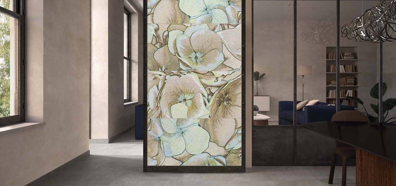 VILLEROY & BOCH ROCKY.ART Płytki o naturalnym wyglądzie kamienia i abstrakcyjnym kwiatowym zdobieniu Połączenie natury i sztuki daje niemal magiczną estetykę.