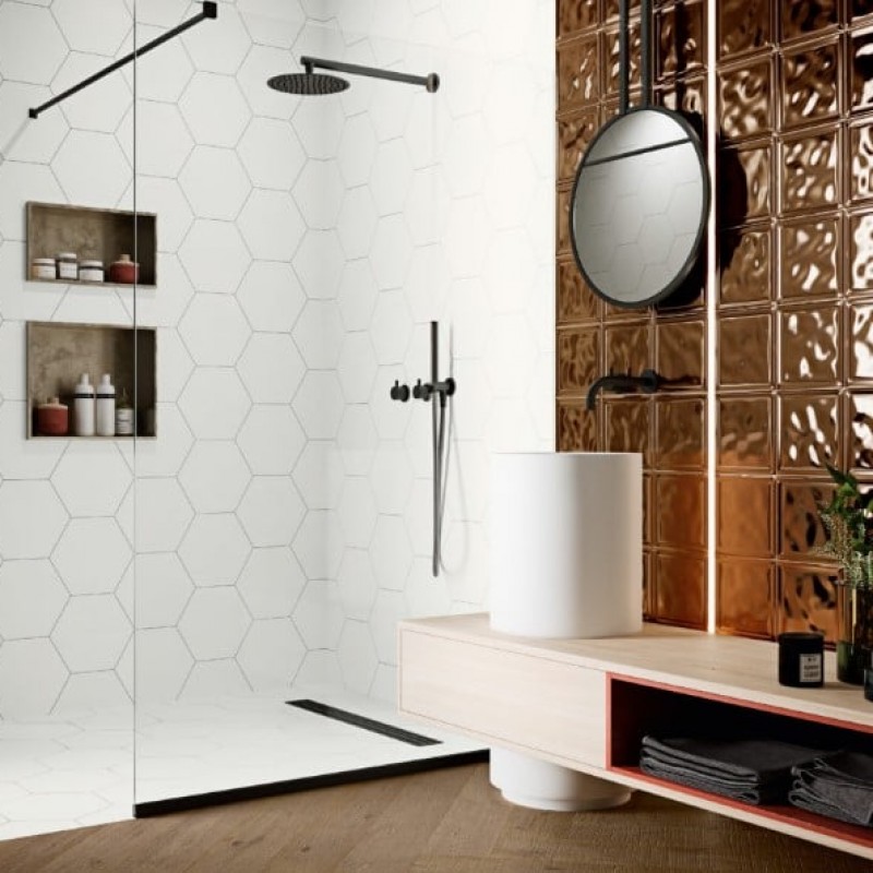 GRESPANIA WHITE & CO to kolekcja eleganckich płytek w szlachetnych kolorach urozmaiconych fakturą 3D. Stworzysz z nimi wyrafinowane wnętrze nie tylko w łazience.