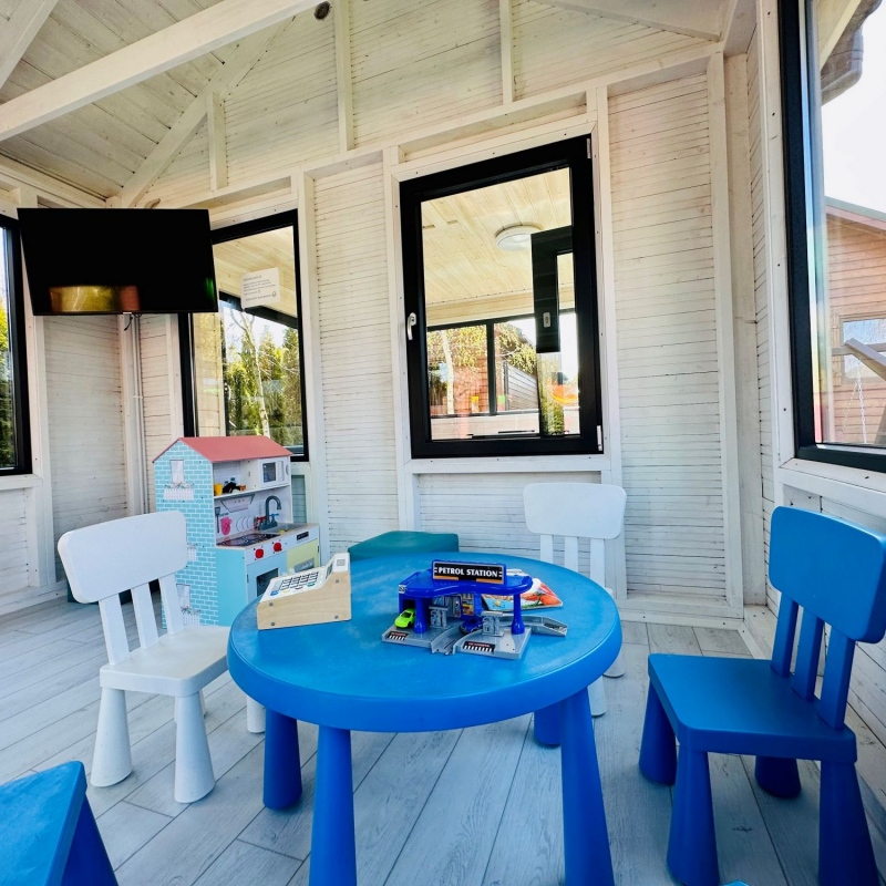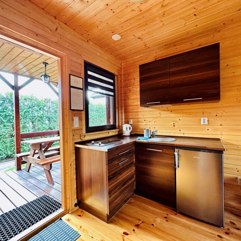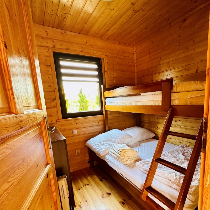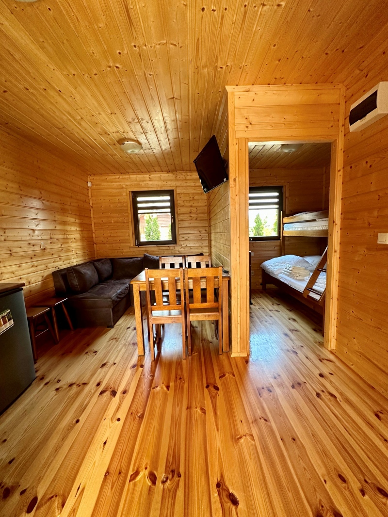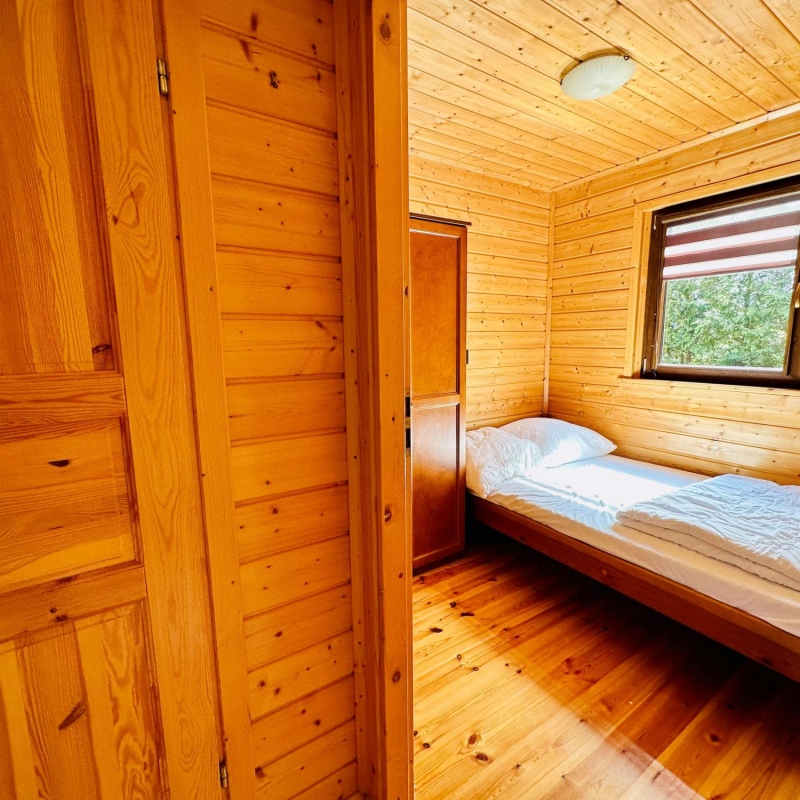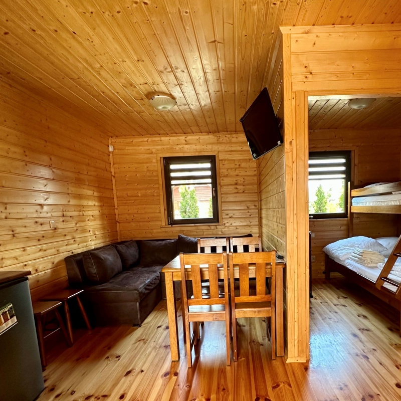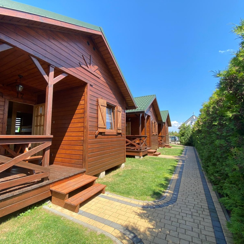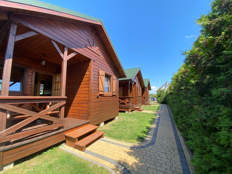 Oferujemy Państwu 22 domki całoroczne drewniane, położonych blisko morza, w odległości zaledwie 240 metrów od pięknej, szerokiej, czystej i strzeżonej plaży. DOMKI PARTEROWE o powierzchni 35m2 z tarasem, przeznaczone dla 4-7 osób. W każdym domku 7 wygodnych miejsc noclegowych rozłożonych w 3 pokojach (dwie sypialnie + jeden salon). Od sezonu 2025 nasze domki wyposażyliśmy dla Państwa w klimatyzację. Domki atrakcyjnie położone z dala od zgiełku i wśród zieleni. Okolica naszego obiektu to tereny zielone, drzewa, łąki oraz sąsiadujący obiekt z domkami. Całe wyposażenie domków nowe, komfortowe, gustownie urządzone, gwarantujące Państwu miły wypoczynek w estetycznych, czystych wnętrzach.
