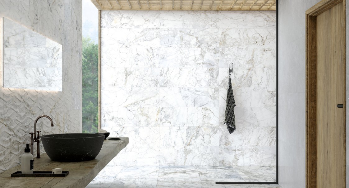 Polecamy płytki o imitacji marmuru z kolekcji Supreme od firmy Museum o wymiarach 60 x 120 cm i o powierzchni naturalnej 3D. Nadają się zarówno na ścianę jak i na podłogę. Teraz