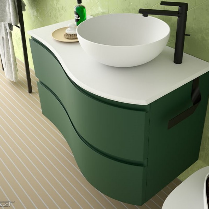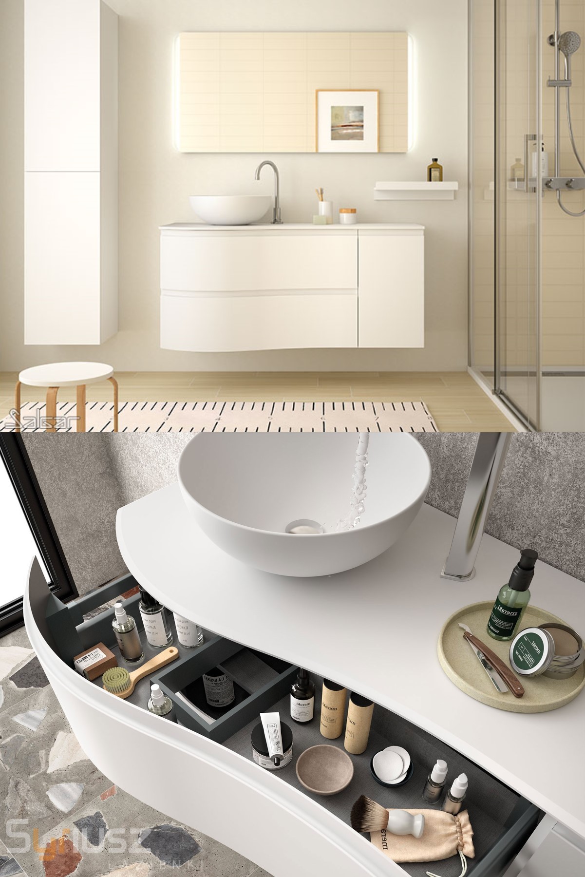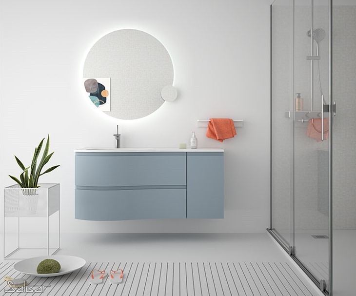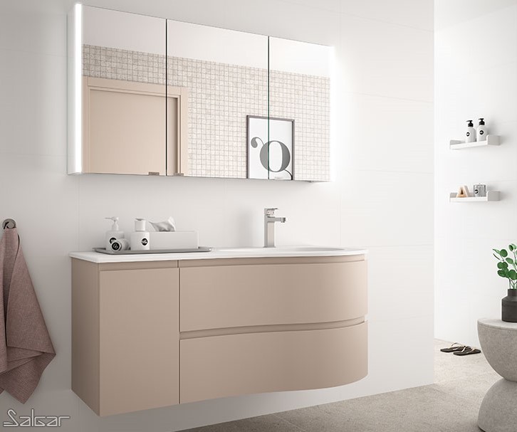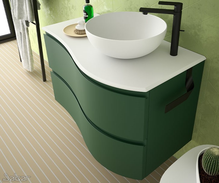Trend, atrakcyjny design, funkcjonalność, ciepło i nowoczesność w nowej serii mebli łazienkowych Salgar. Fronty szuflad o atrakcyjnym falistym designie jednocześnie wyposażone w doskonałą ergonomię zaprojektowaną tak, aby dwie osoby mogły wygodniej dzielić łazienkę. Znajdziesz je w 5 matowych słynnych już kolorach Salgar.