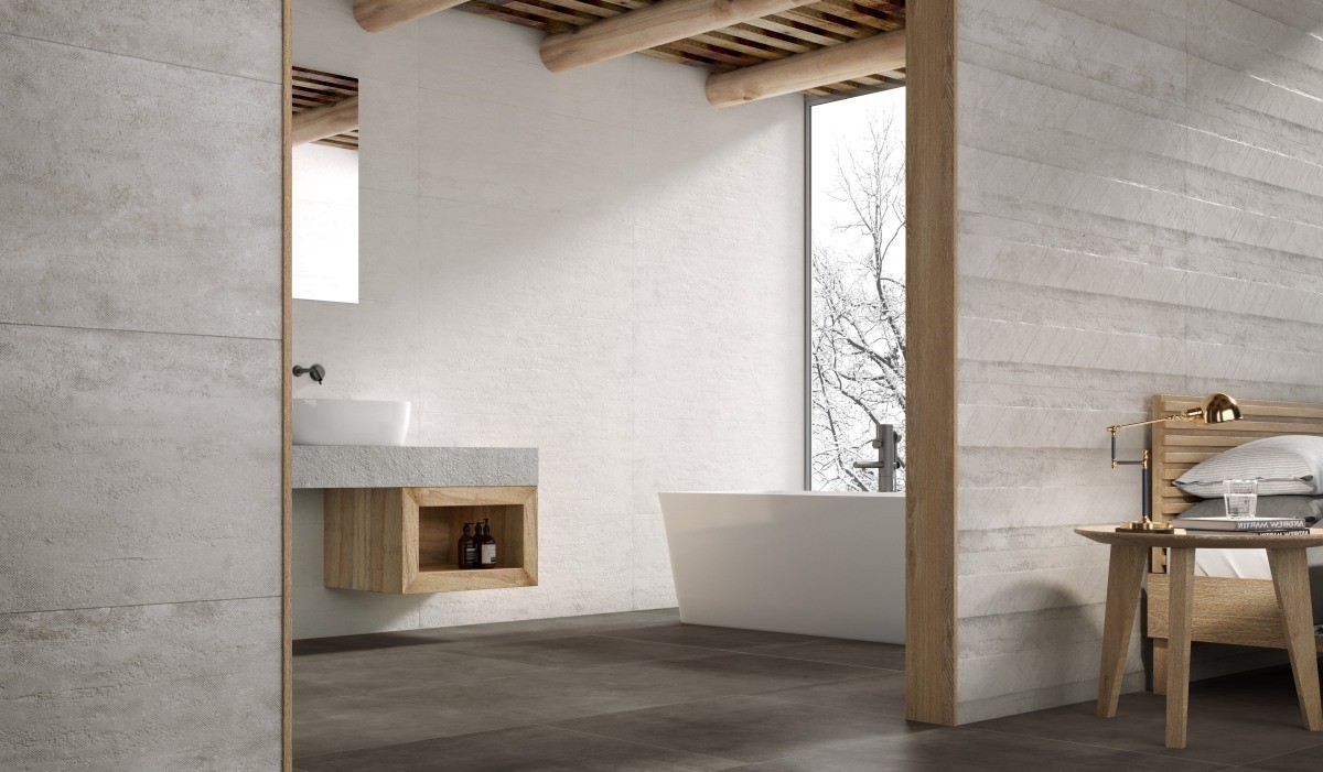 Oraz płytki bazowe z kolekcji Texture w kolorze blanco o wymiarach 45x120 cm również w cenie 209 zł/m2.